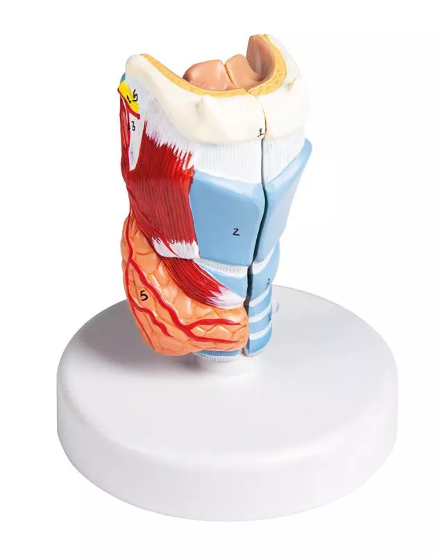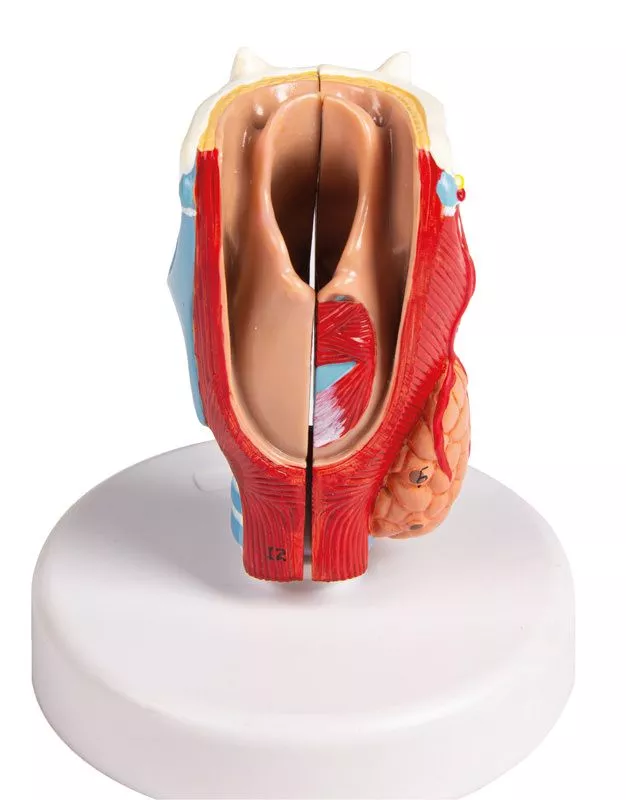 แสดงกายวิภาคของกล่องเสียงมนุษย์และโครงสร้างที่เกี่ยวข้อง