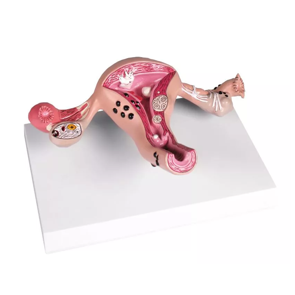 มดลูกที่มีโรคต่างๆ ขนาดเท่าของจริง มีการ์ดให้ความรู้ระบุตำแหน่งของโรคและกายวิภาค พร้อมฐานตั้งที่ถอดได้
