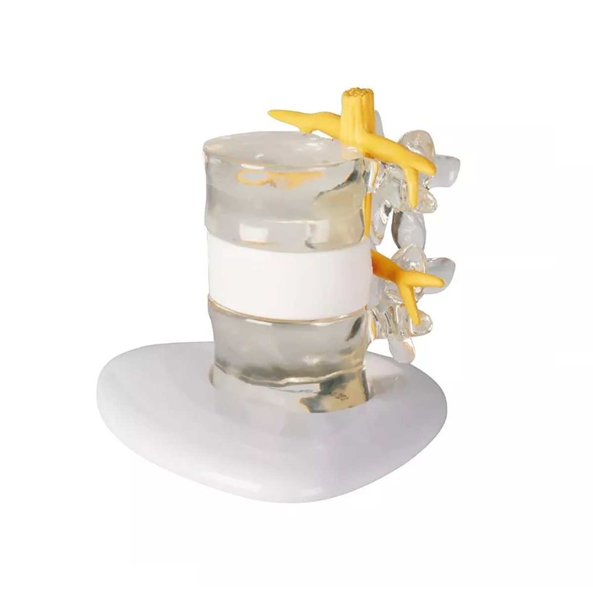หุ่นจำลองสภาวะหมอนรองกระดูกทับเส้นประสาท ประกอบด้วยกระดูกสันหลังส่วนเอว 2 ชิ้น มีขนาด 2 เท่าของของจริง เพื่อให้เห็นกลไกการเกิดโรคได้อย่างชัดเจนแม้จะมองจากระยะไกล ง่ายต่อการใช้งานและเหมาะสำหรับการเรียนการสอนแบบกลุ่ม