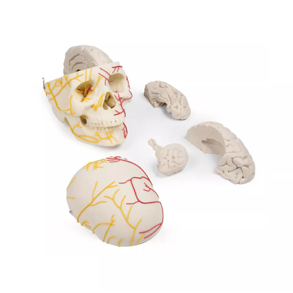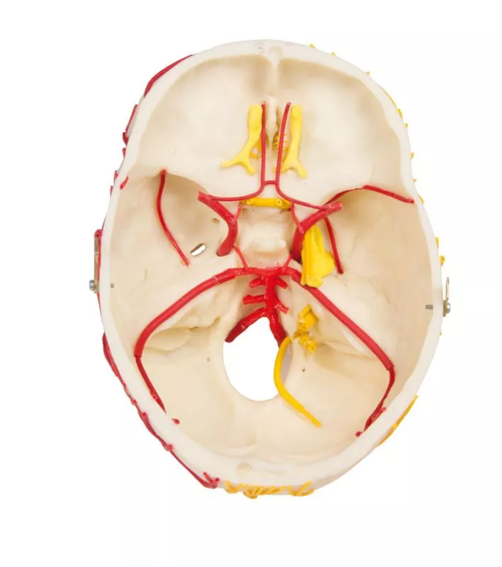 รหัสสินค้า SKU : 4610 หุ่นจำลองกะโหลกศีรษะแสดงหลอดเลือดและเส้นประสาทหุ่นจำลองกะโหลกศีรษะที่แสดงหลอดเลือดแดงและเส้นประสาทที่มาเลี้ยงบริเวณศีรษะ แยกชิ้นส่วนได้ 8 ชิ้น