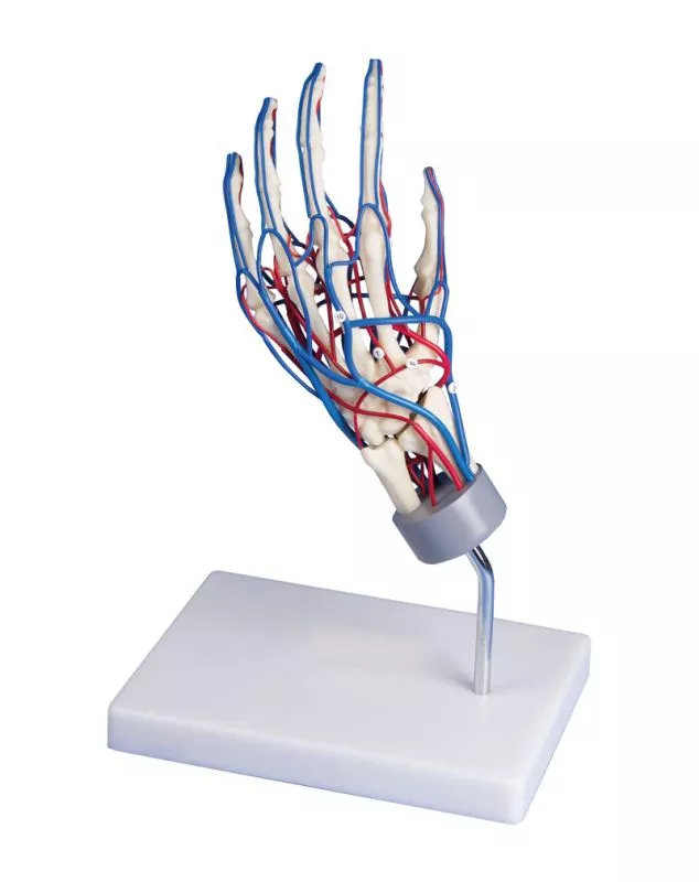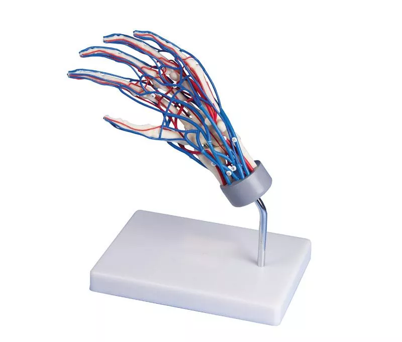 หุ่นจำลองหลอดเลือดดำและแดงภายในมือเป็นหุ่นจำลองมือซ้ายขนาดเท่าของจริง มีโครงกระดูกอยู่ภายในสามารถมองเห็นได้ เน้นการแสดงรายละเอียดของเส้นเลือดแดงและเส้นเลือดดำหลักทั่วทั้งมือ ออกแบบมาเพื่อช่วยให้เห็นภาพรวมของระบบหมุนเวียนเลือด