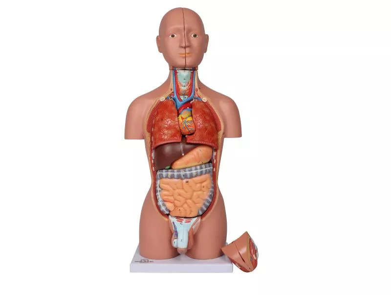 หุ่นจำลองลำตัวมนุษย์ขนาดครึ่งหนึ่งของตัวจริง ออกแบบมาให้มีขนาดกะทัดรัดแต่ยังคงรายละเอียดที่สำคัญไว้อย่างครบถ้วน และสามารถถอดแยกชิ้นส่วนได้ 16 ชิ้น คือ