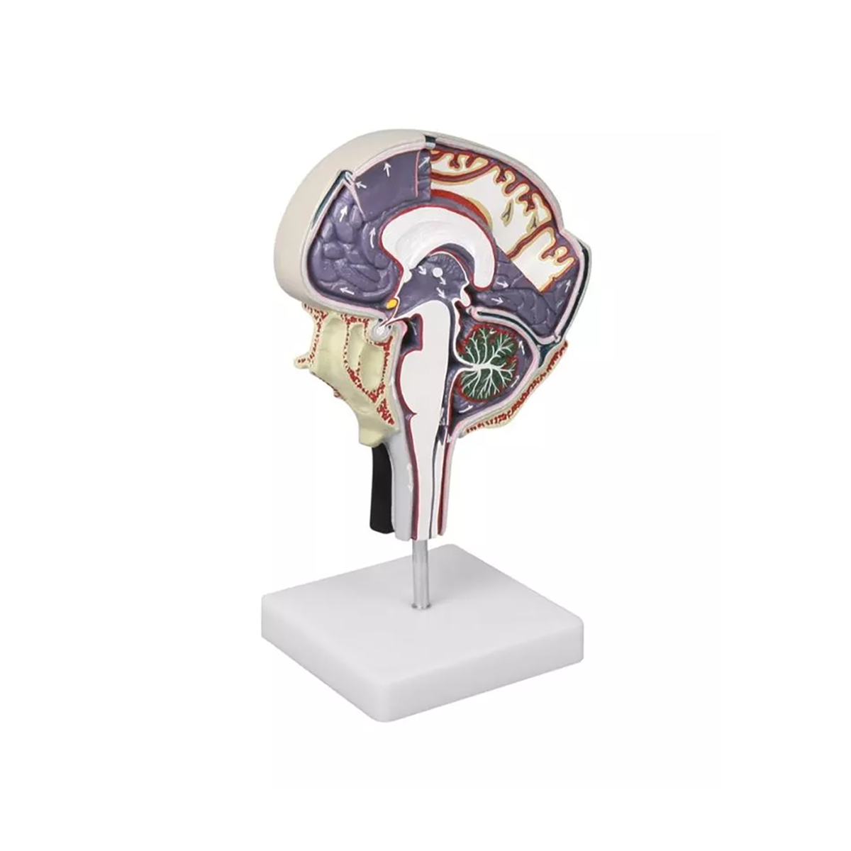หุ่นจำลองขยายส่วนจากสมองซีกขวาเพื่อแสดงรายละเอียดเชิงลึกของระบบเยื่อหุ้มสมองและช่องว่างที่บรรจุน้ำเลี้ยงสมองและไขสันหลัง ช่วยให้ผู้เรียนเข้าใจกระบวนการไหลเวียนของน้ำเลี้ยงสมองและไขสันหลัง