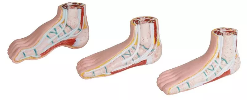 ชุดรวมหุ่นจำลองเท้าลักษณะต่างๆ ขนาดประมาณครึ่งหนึ่งของของจริง เปรียบเทียบ 3 ลักษณะ คือ เท้าปรกติ เท้าโก่ง และเท้าแบน ช่วยให้เห็นความแตกต่างทางโครงสร้างด้านกายวิภาคของรูปเท้าแต่ละแบบได้อย่างชัดเจน