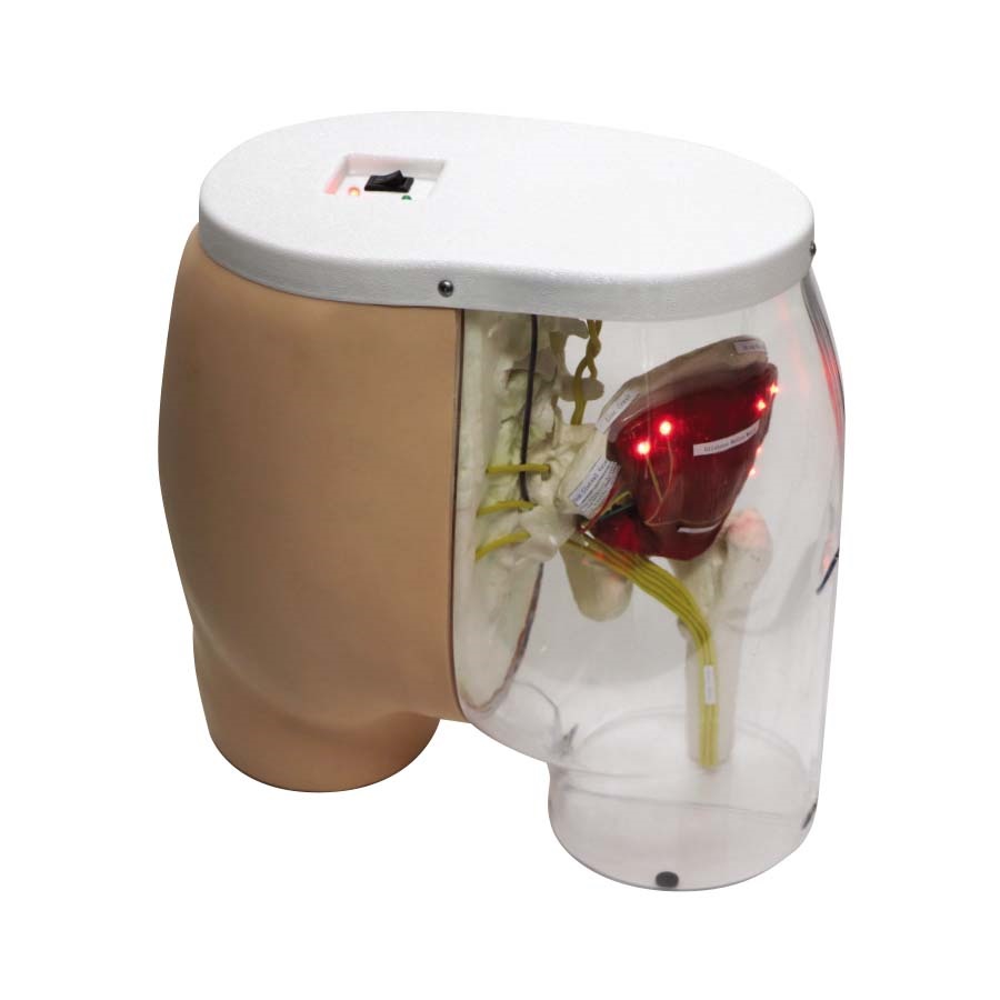 มีความสมจริงทนทานต่อการแทงซ้ำๆ ใช้ฝึกการฉีดเข้ากล้ามเนื้อสะโพกด้านหลัง มีระบบไฟแจ้งเตือนแบบเรียลไทม์ ช่วยลดความผิดพลาด บอกได้ทันทีว่านักเรียนทำได้ถูกต้องตามเกณฑ์มาตรฐานหรือไม่